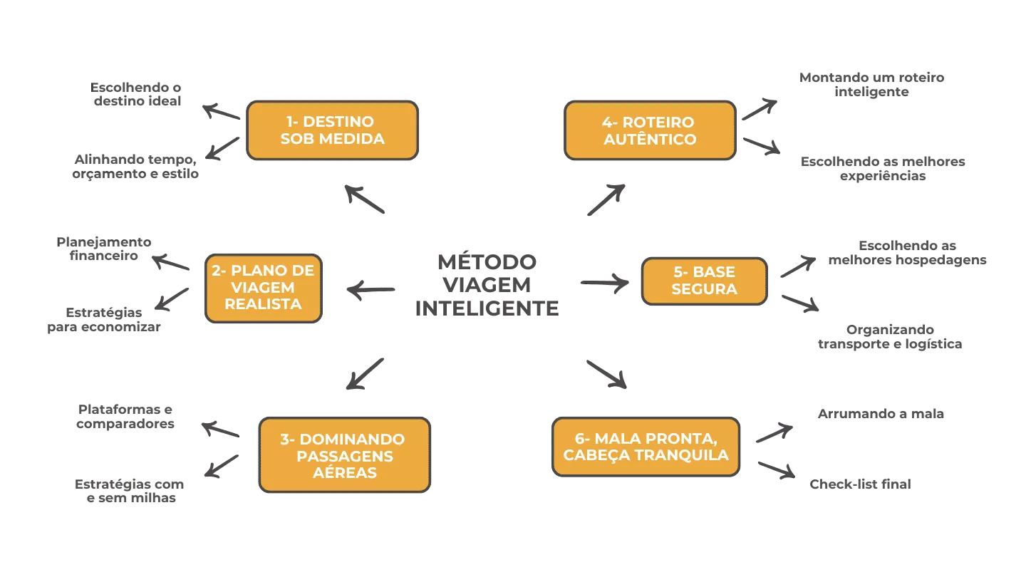 Vai sim! O método é estruturado em etapas simples e aplicáveis. Você vai aprender desde como escolher o destino até montar o roteiro, economizar e viajar com confiança.