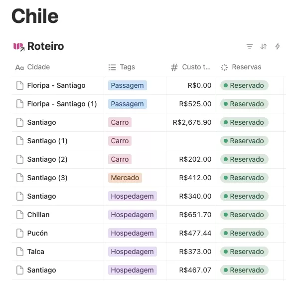Ao se inscrever no Método Viagem Inteligente, você terá acesso ao meu modelo de planilha no Notion, a mesma que eu uso para organizar meus roteiros e planejar todos os detalhes financeiros das minhas viagens.